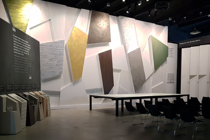 Un'esperienza sensoriale, una immersione di colore, materia, luce riflessa nelle superfici materiche. Un punto di formazione per progettisti, maestri decoratori, rivenditori, dove sperimentare le soluzioni, interagire con i tecnici per ricercare soluzioni su misura, trarre ispirazione, conoscere, sperimentare.